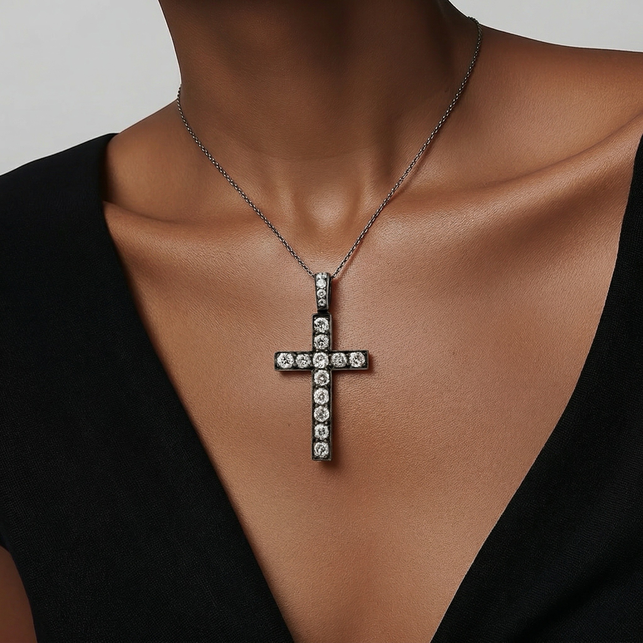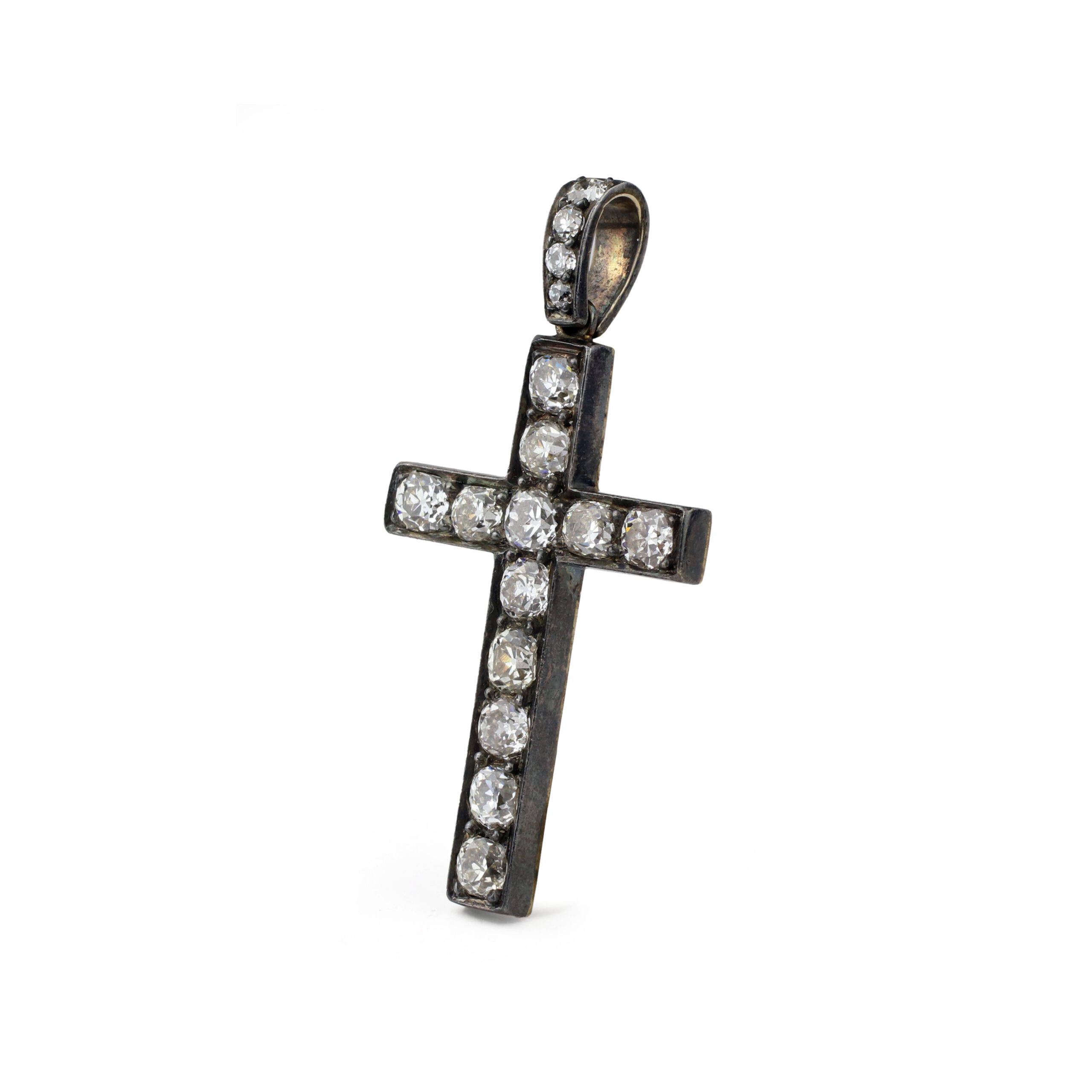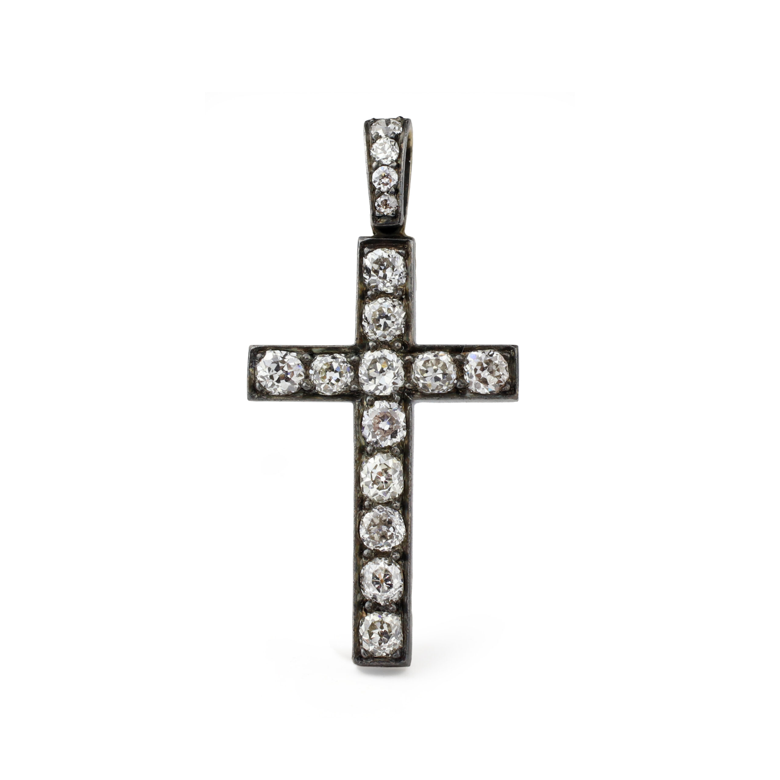 Designed as a cruciform of old cut diamonds set in silver and gold, circa 1890