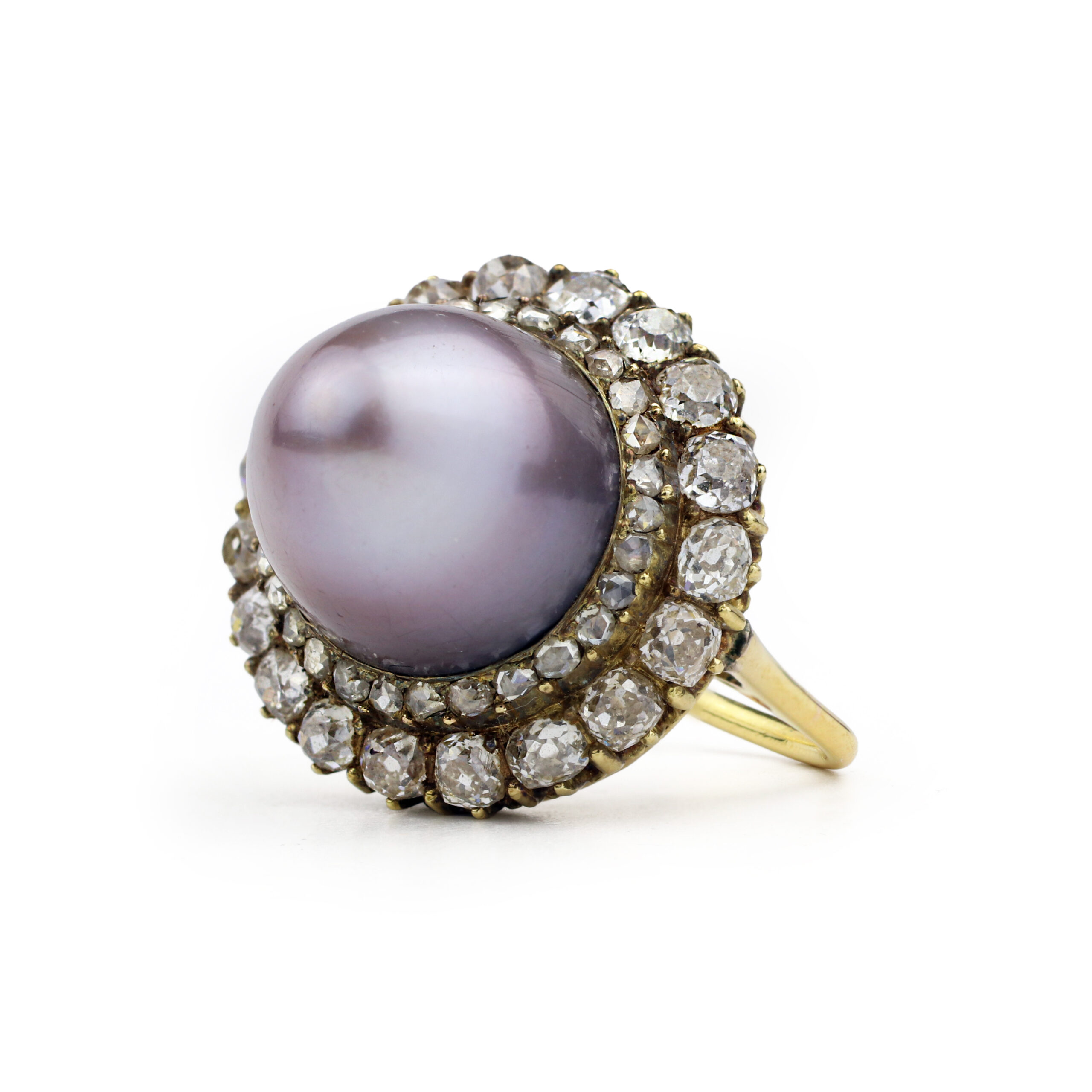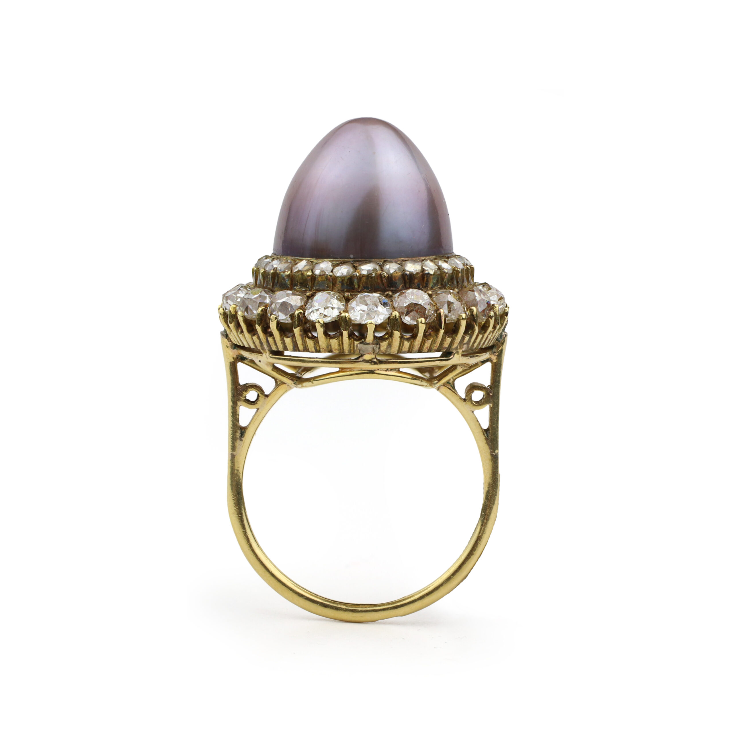 Centering on a drop shaped pearl within a double border of old cut diamonds mounted in gold, circa 1890