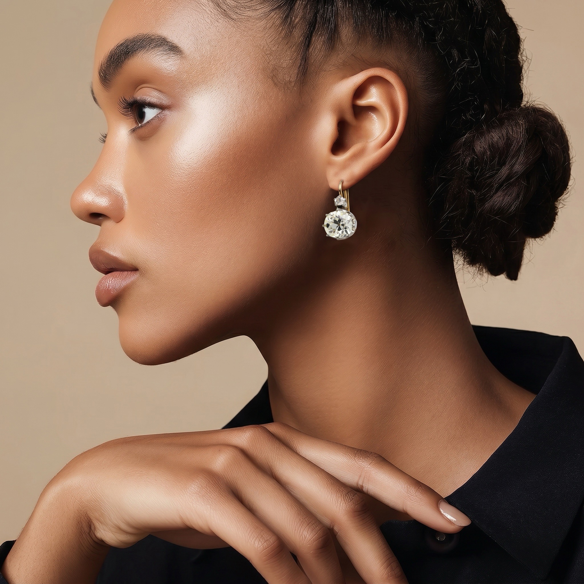 Antique Old Mine Diamonds on the Wire Ear Pendants