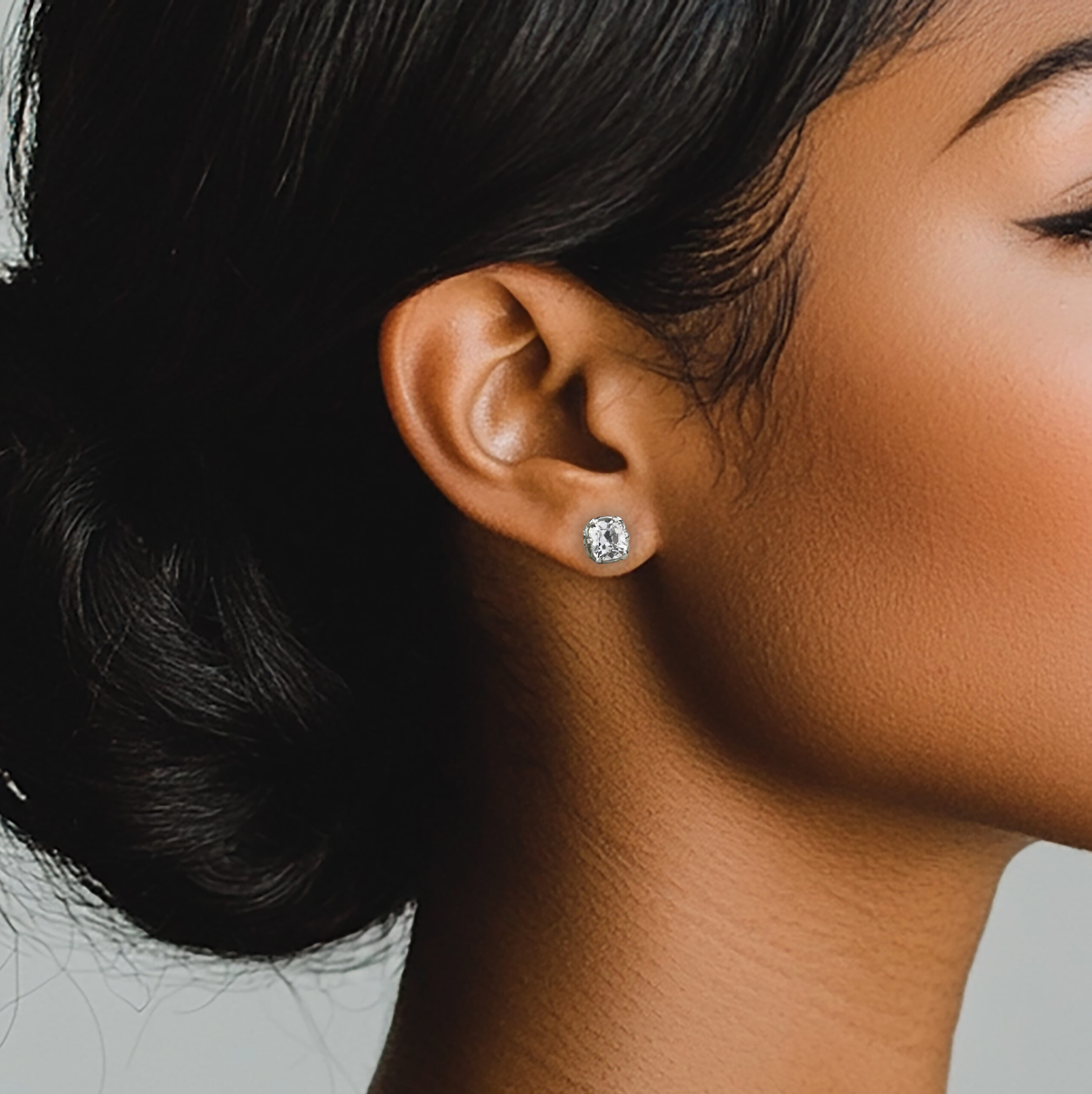 Cushion Shape Diamond and Platinum Ear Studs