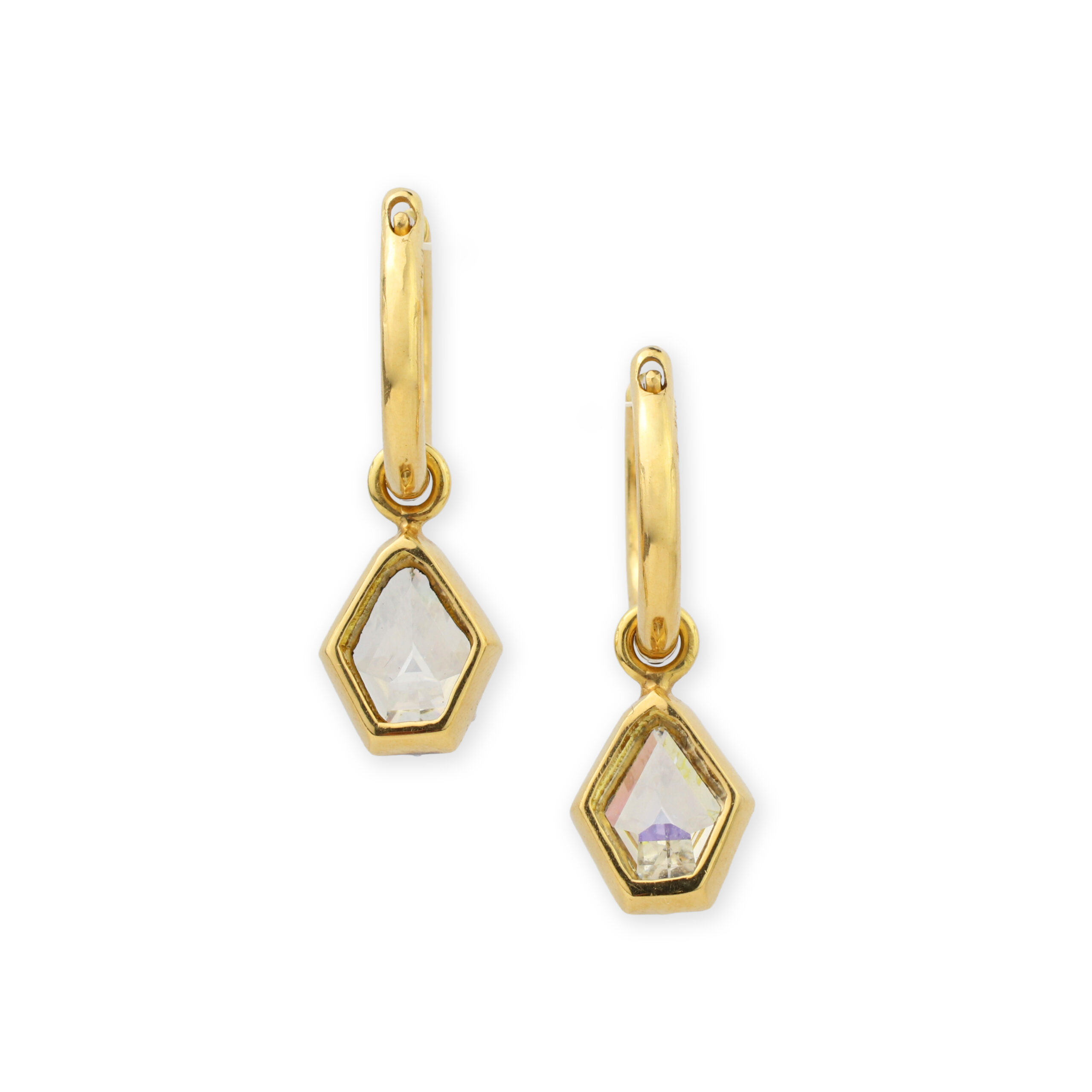 Gold Hoop with Trapezoid Shaped Diamond Drop Ear Pendants