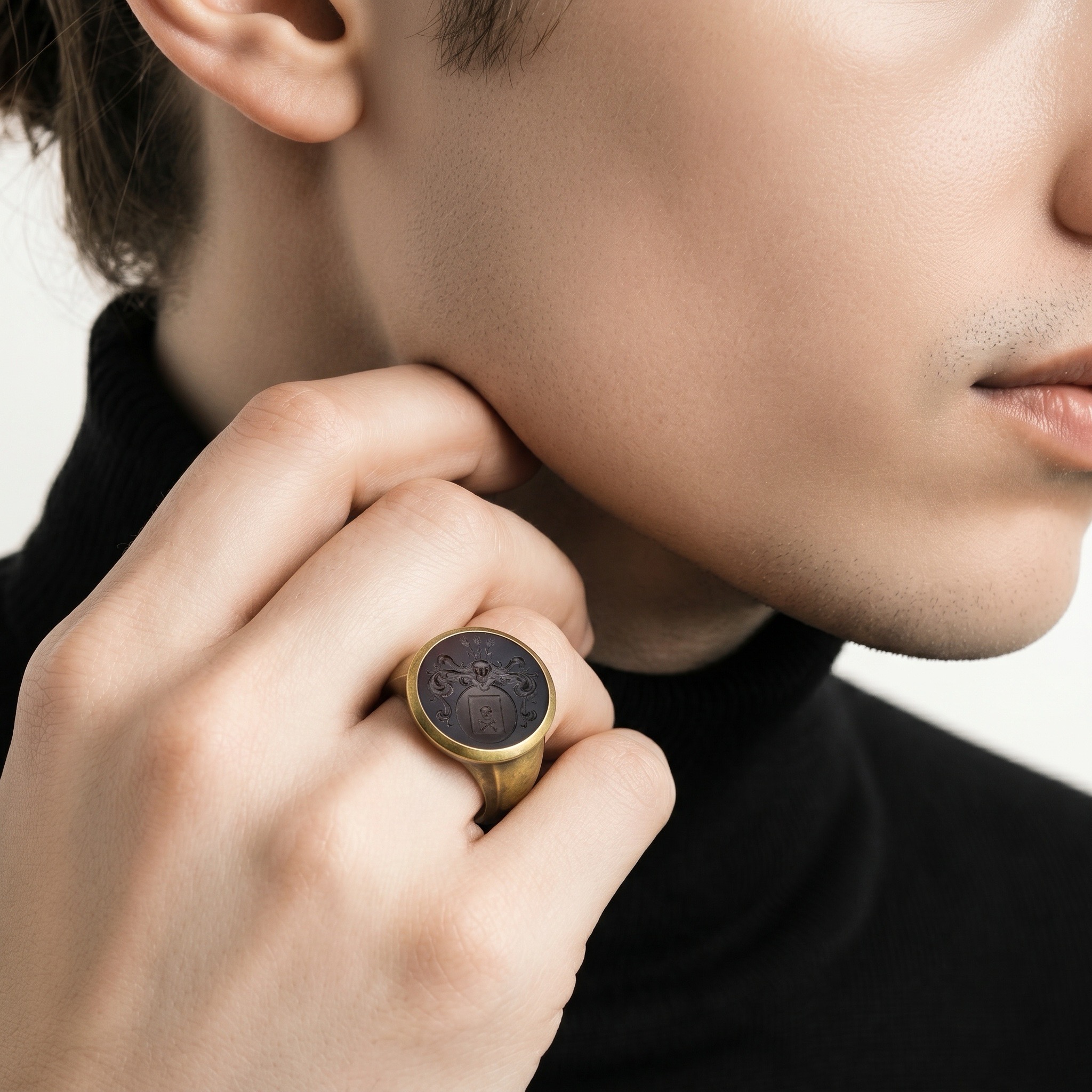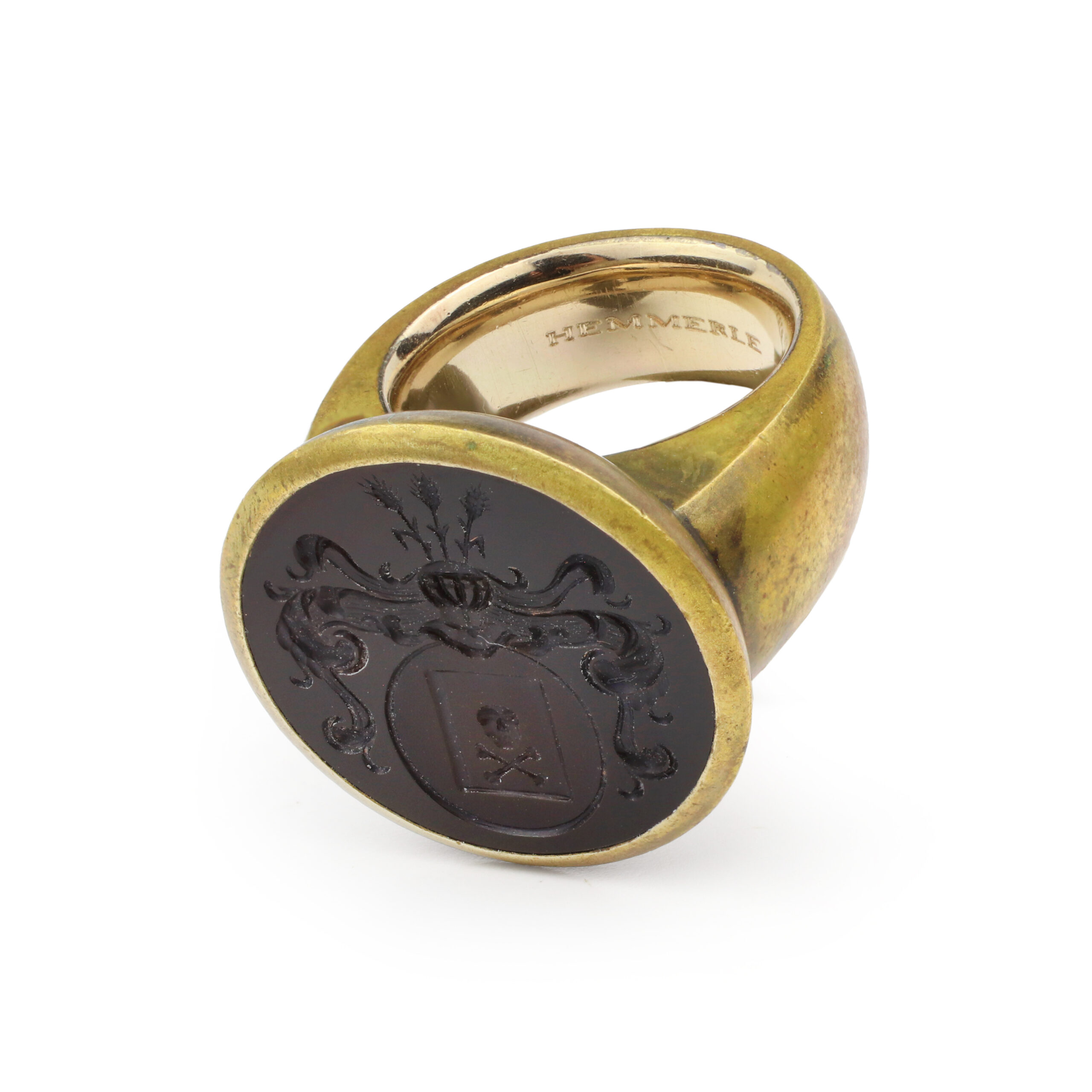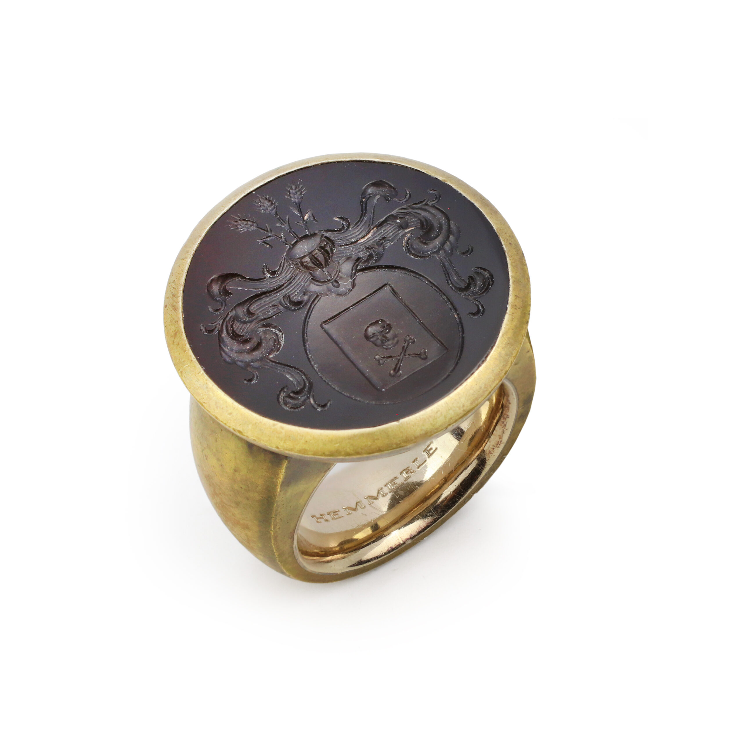 Hemmerle Onyx Intaglio, Brass and Gold Signet Ring