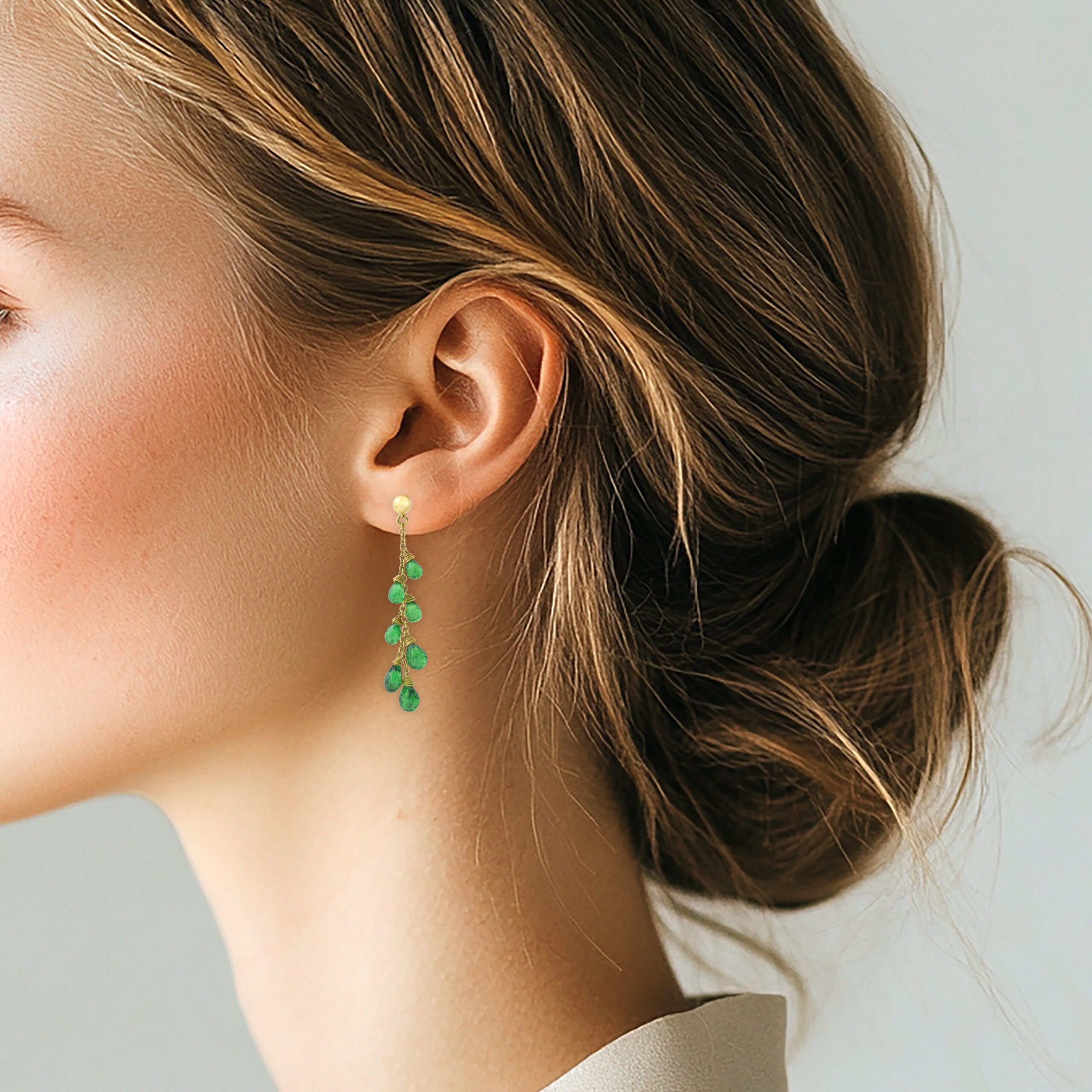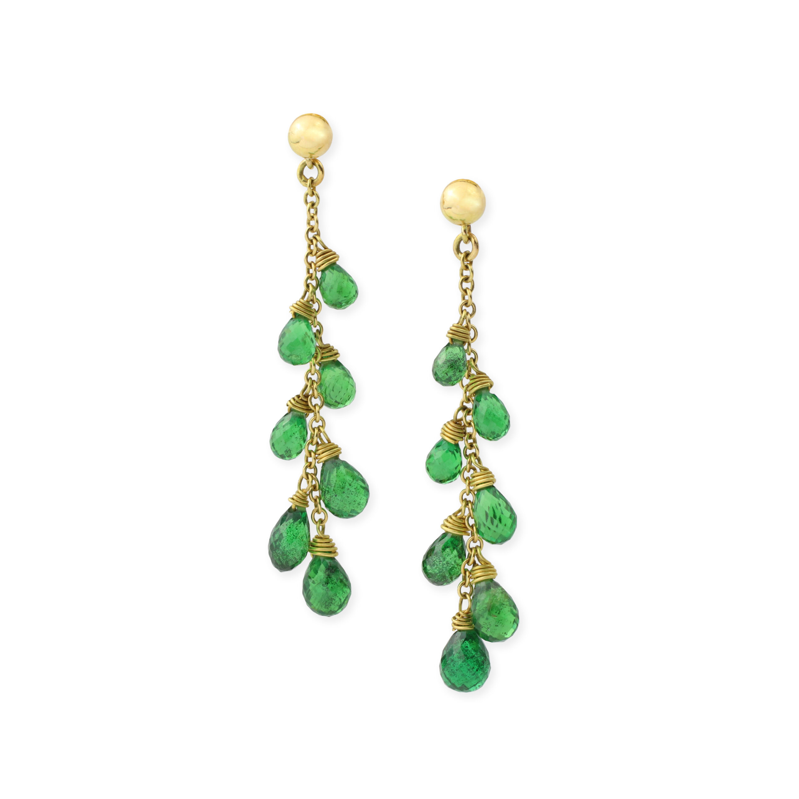 Tsavorite Garnet and Gold Tassel Ear Pendants